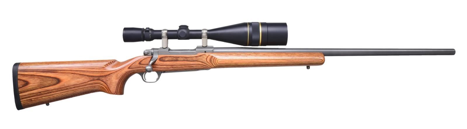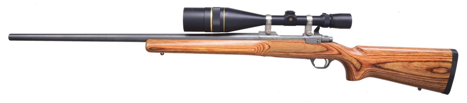 Cal. 308 WIN. S# 784-37666. Bbl. 26" with no provisions for sights. Target grey finish. Laminated target stock with rubber butt pad & swivel studs. Leupold Vari-X III 6.5x20-50mm duplex reticle scope. CONDITION: All aspects are very fine with only minor handling marks. Bright shiny bore with sharp rifling. MODERN (22-3221/ZAL) $800-1200
