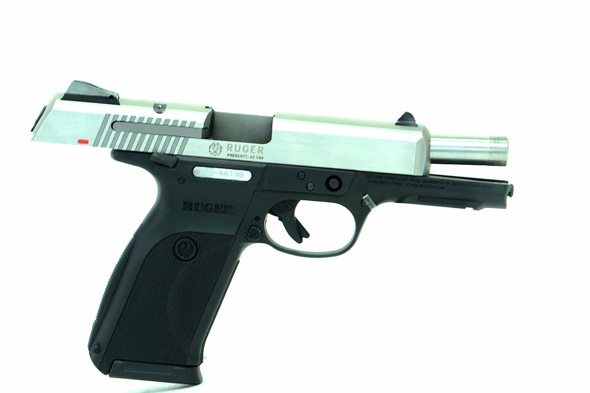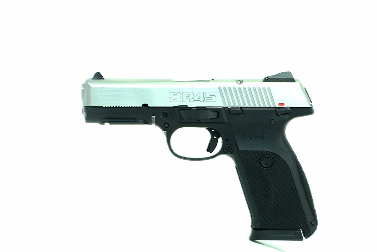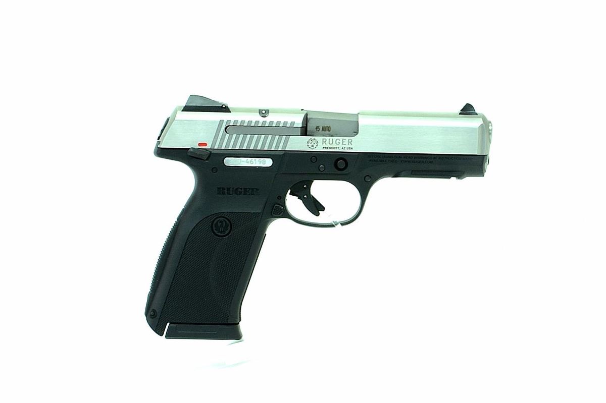 STOCK 2245HR-0524-G1, RUGER, MODEL S R 45-03801, 45 AUTOMATIC PISTOL, 2 CLIPS, LOCK, PLASTIC CASE, GROOVES/ TWIST 6 R.H, TURNS 1”-16”, MADE IN THE U.S.A, CONDITION 9/10, SN.380-46XXX