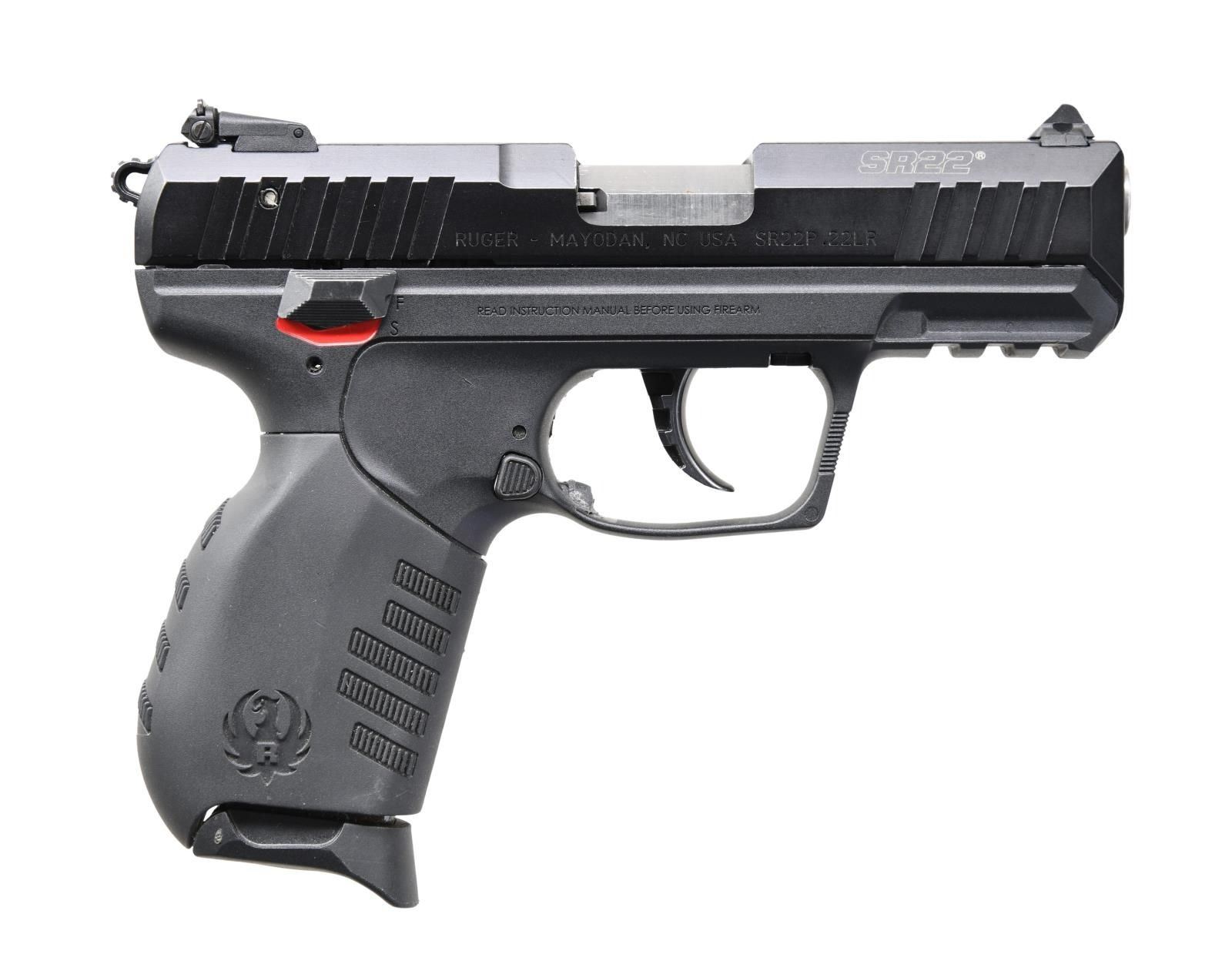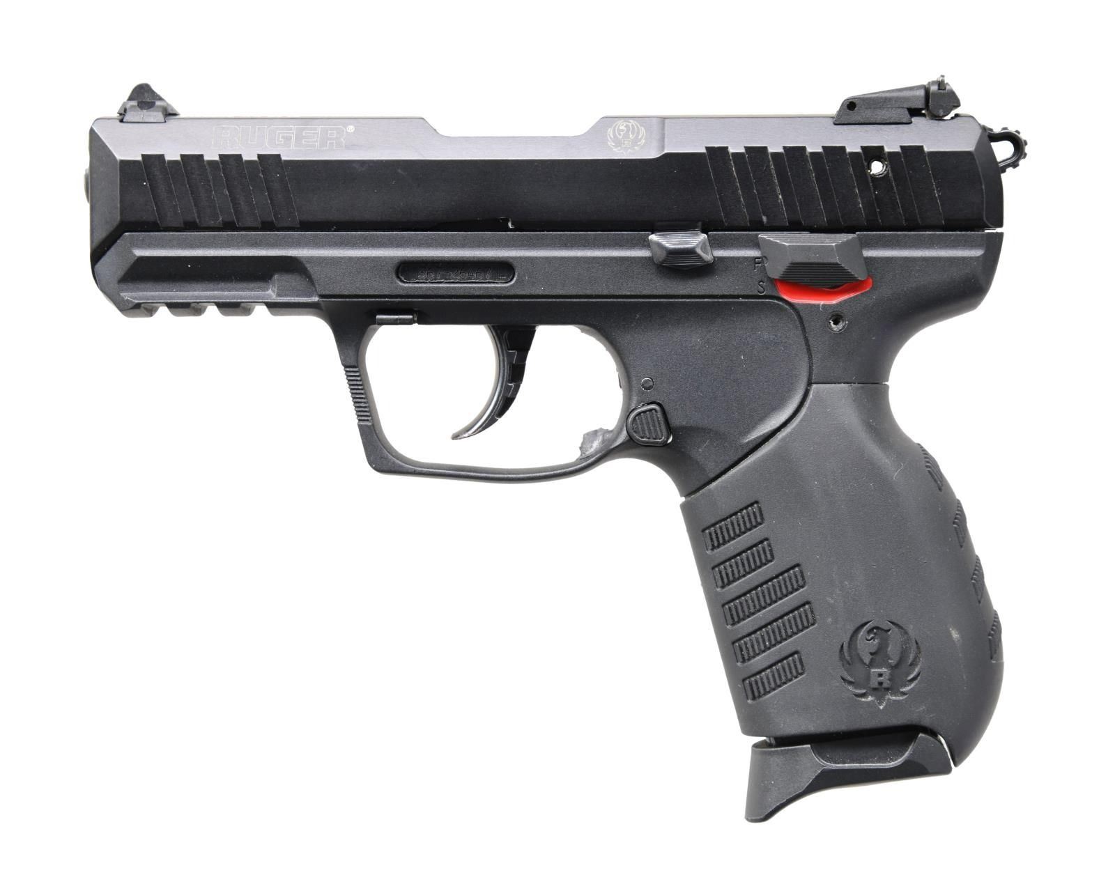 Cal. 22 LR. S# 367-26467. Bbl. 3.5", stainless. Mfg. 2017 (2012 to date) in Mayodan, NC as Model 03600 having black polymer frame with accessory rail in front of trigger guard. Black anodized aluminum slide with front and rear cocking grooves. Dovetailed 3-dot sight set with adjustable rear. Ambidextrous safety and magazine release, plus hammer spur for easy SA cocking. High cut front strap for enhanced control. MAGS: 2 factory 10 rd. with black plastic push button finger extension bases. UNATTACHED ACCESSORIES: Plano triangular shaped, black plastic case. CONDITION: all aspects near excellent, including bore and grip. Very minimal signs of use. (23-7261/NW). MODERN. $250-350.