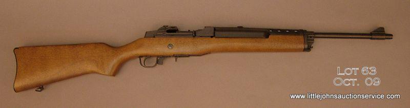 RUGER Mini-14, #188-66081, .223 cal., blued finish, 18" barrel, smooth walnut stock. Rifle is in overall very good condition showing 90% plus original finish, thinning at the muzzle. Bore is excellent, wood is excellent overall showing a few slight dings from storage. Rear sight is missing a small piece from the left side. NO mag. Est. $200-$400.
