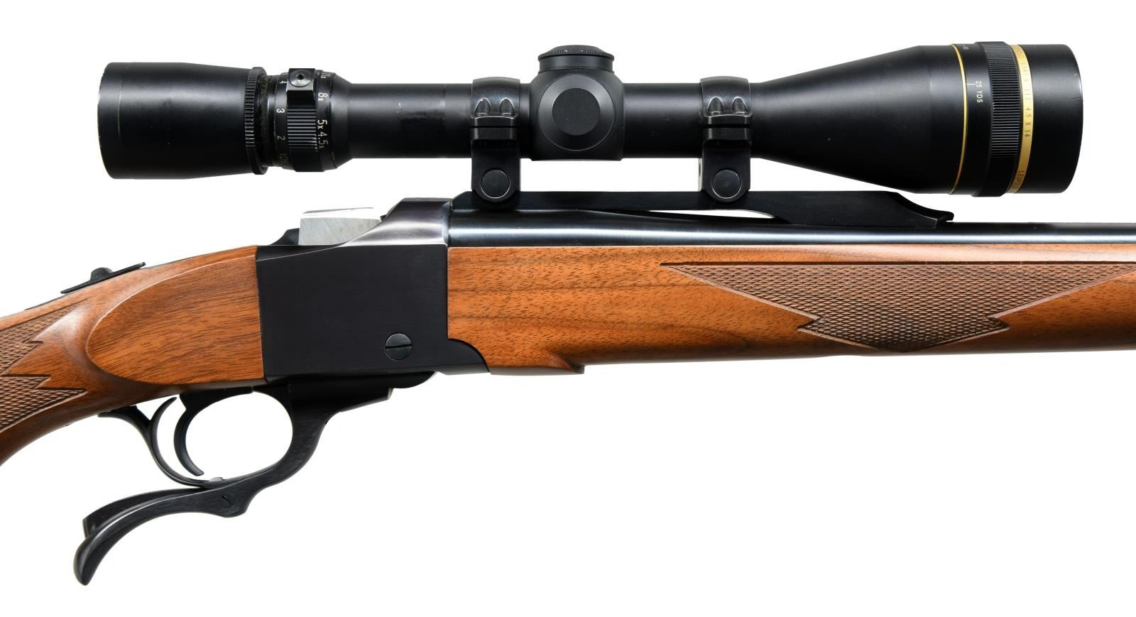 Cal. 6.5 Creedmoor. S# 134-52697. Bbl. 24". Ramped gold bead front sight. No rear iron sight present. Leupold Vari-X 4.5-14x power scope mounted on Ruger rings w/ duplex crosshair reticle & dirty optics that may clean up better. Checkered walnut stock w/ factory recoil pad. Alexander Henry forend. Bottom mounted sling studs. CONDITION: all aspects near excellent. PROVENANCE: From the Estate of Jon Thomas. (23-1668/MJC). MODERN. $1,000-1,500.