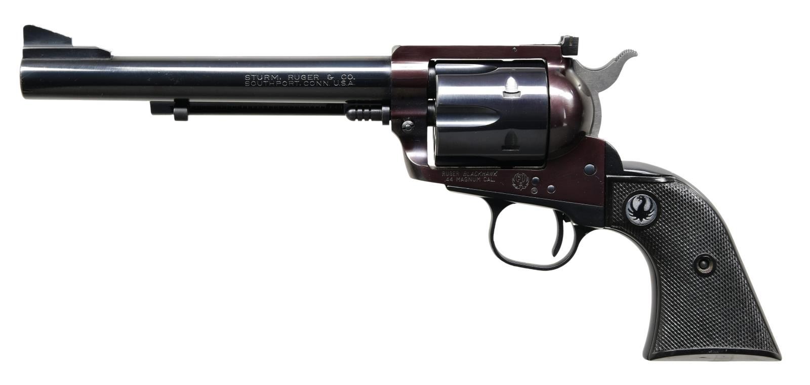 RUGER OM FLAT TOP 44 MAG. BLACKHAWK REVOLVER.