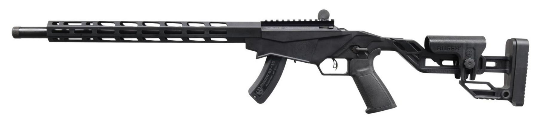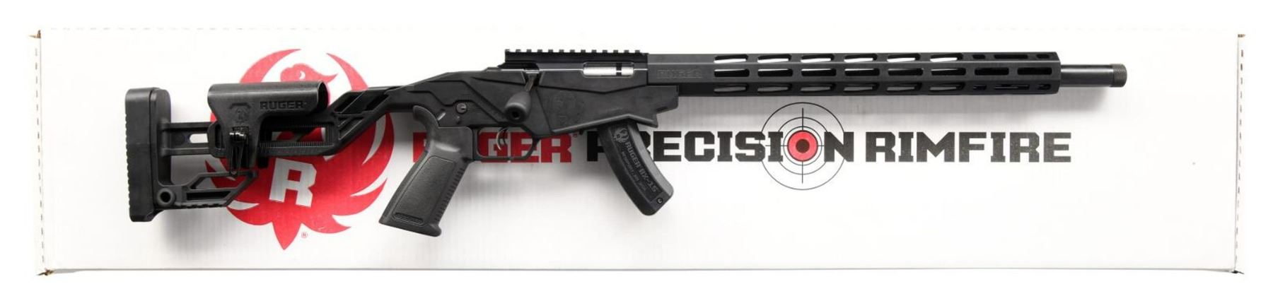 Cal. 22 LR. S# 841-63922. Bbl. 18" heavy, cold hammer forged from 1137 alloy steel and threaded 1/2"-28 for accessories. Mfg. 2021 as Model 08400 having molded 1 piece chassis for consistency and accuracy. Free float Magpul M-LOK handguard. Factory installed Picatinny rail with 30 MOA for long range use. Fully adjustable stock plus Marksman Adjustable trigger with center blade safety. Adjustable bolt throw choices of 1 1/2" plus 3" to simulate high power rifle use and to avoid a "short throw". MAGS: 1 factory 15 rd. BX-15; uses all 10/22 mags. UNATTACHED ACCESSORIES: original box with packaging. CONDITION: all aspects near excellent with new, unfired appearance. PROVENANCE: The Collection of Gun Sport Ltd. owned by Jon R. Thomas. (23-3357/NW). MODERN. $300-450.