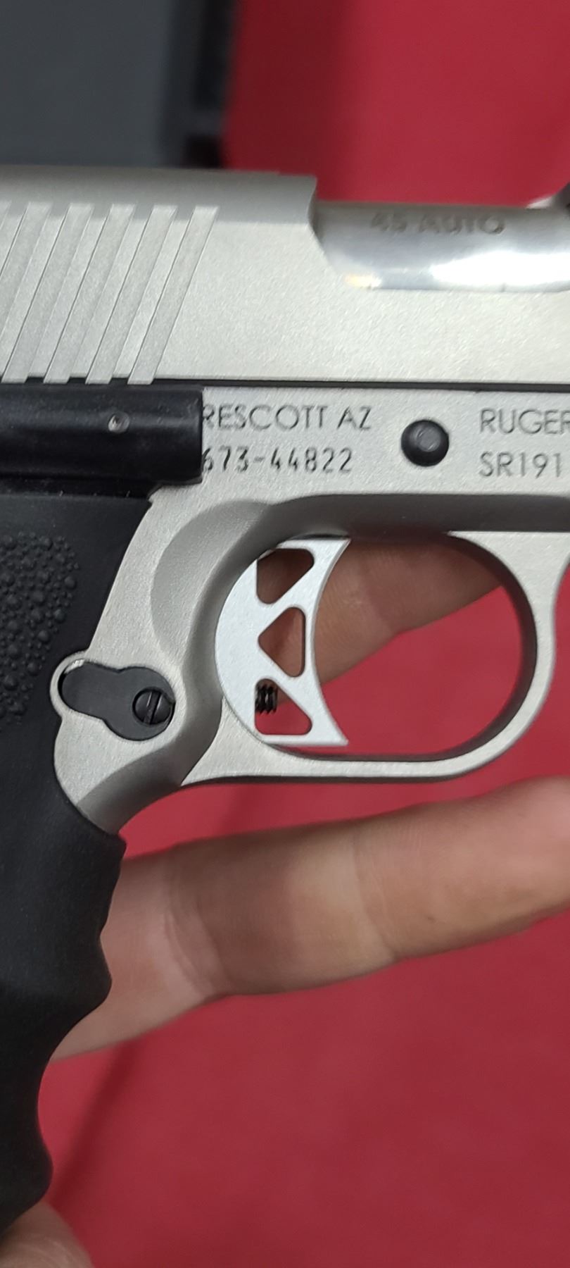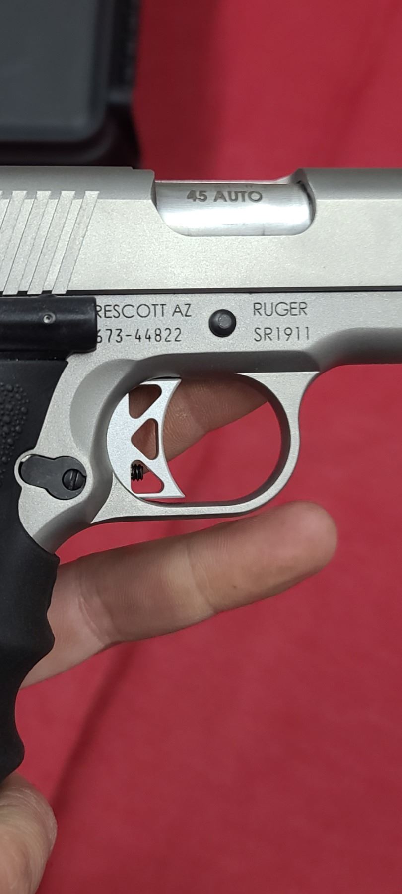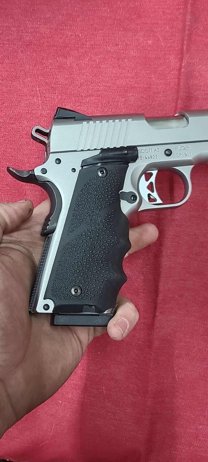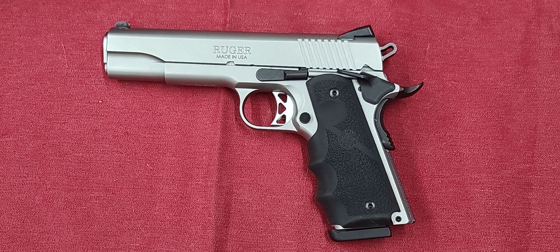 RUGER SR1911 .45 AUTO 5" BARREL - SILVER - SERIAL NUMBER:672-4482 - SALE OF PISTOL IS SUBJECT TO FEDERAL FIREARMS LAWS OF CANADA REGARDING WHO CAN PURCHASE A PISTOL
