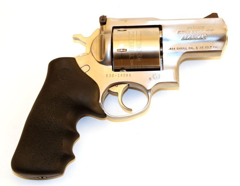 Ruger Super Redhawk Alaskan in .454 Casull / .45 Colt. Bore is bright and clean, stainless steel finish is 95%, with a few tiny freckles by muzzle, and grips are excellent. Overall excellent condition. Caliber: .45 Colt / .454 Casull Serial #: 530-14594