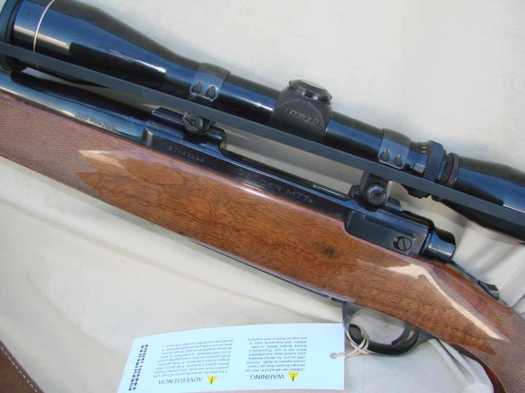RUGER M-77, IN 338 WIN MAG, W/ 4X9 VARI X 2 LEUPOLD SCOPE, SLING, EXCELLENT + CONDITION (L)A4314, 7743194