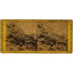 <b>670. RUINS OF FORT SUMTER</b> A great outdoor stereoview card bearing a double 6" x 3" photograph showing the devastated east side of the "Sea Face of Fort Sumter" in Charleston, S.C. Backstamp by Anthony, New York, from the "Photographic History The War for the Union" series. Minor soiling, a couple of small stains, otherwise very good condition.<b> $75-100</b>