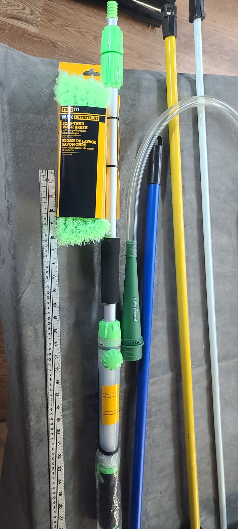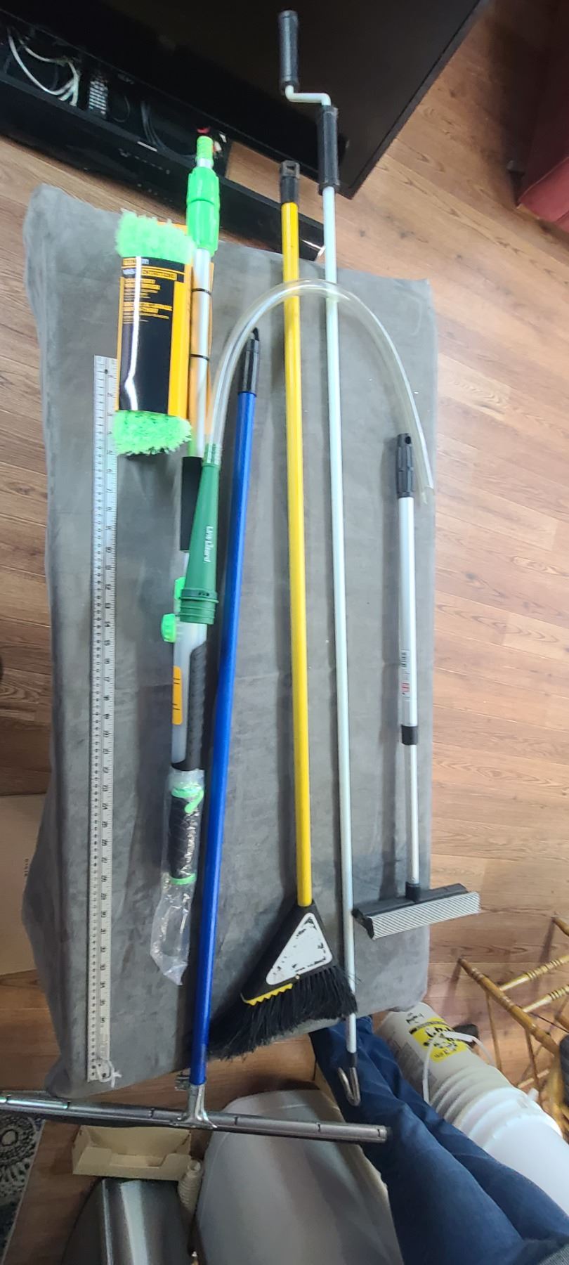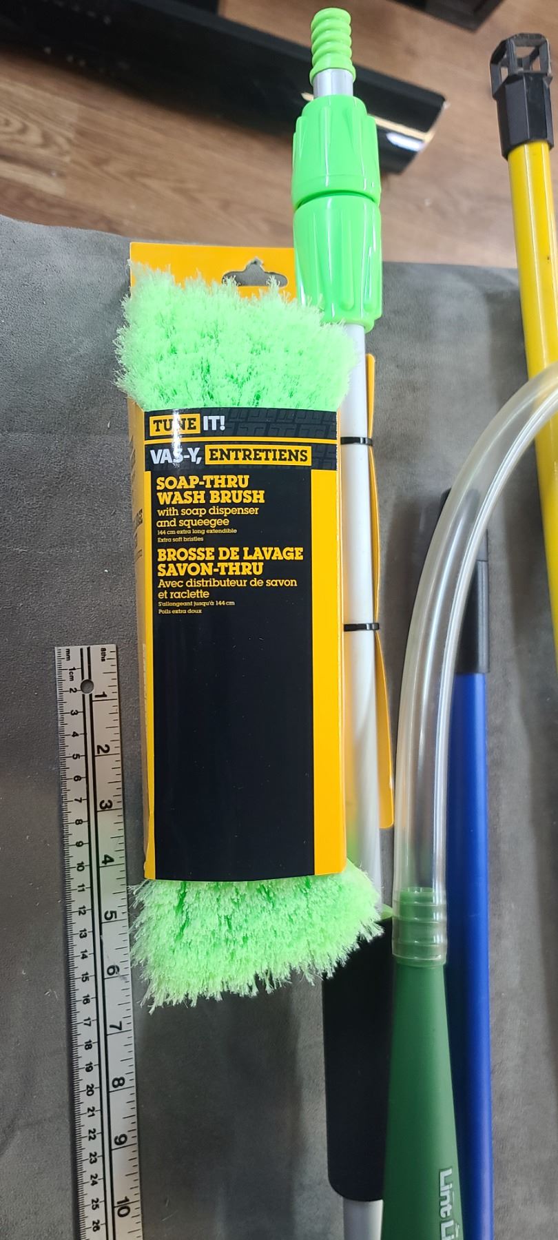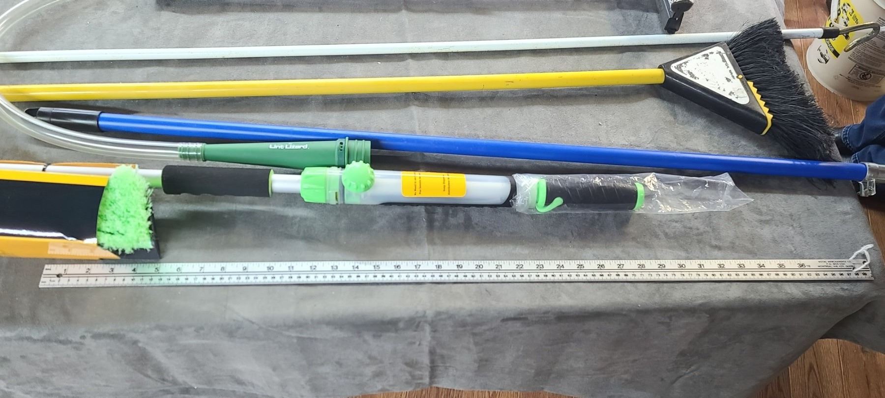 RULE METER, SQUEEGY, FIBRE CLOTH CAR WASH BRUSH, AND AWNING CRANK HANDLE