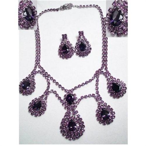 OH LA LA this is GLITZ at its best! For the PURPLE lover this set will knock em out with all the brilliance and color!! The necklace is a festoon design, similar to Edwardian pieces and it is all prong set with open back on all the pendants. ( see photo next to a DIME) The necklace has a spring clasp and will go up to 17 ½" and the longest drop is 2 ½" long. The set looks as if it has never been worn. The earrings are pierced.