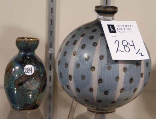 "RUPERT DEESE POTTERY VASE 8"" high, together with a smaller unmarked pottery vase, excellent packing and shipping (excluding insurance) $30"