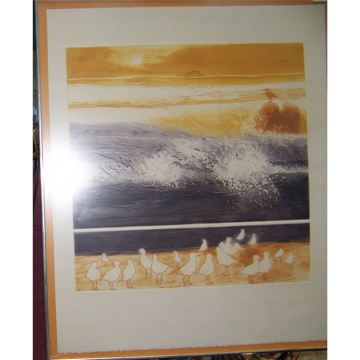 RUSSA GRAEME "SURF" ORIGINAL HAND SIGNED ETCHING 1977 W/ C.OA. FRAMED #105/125