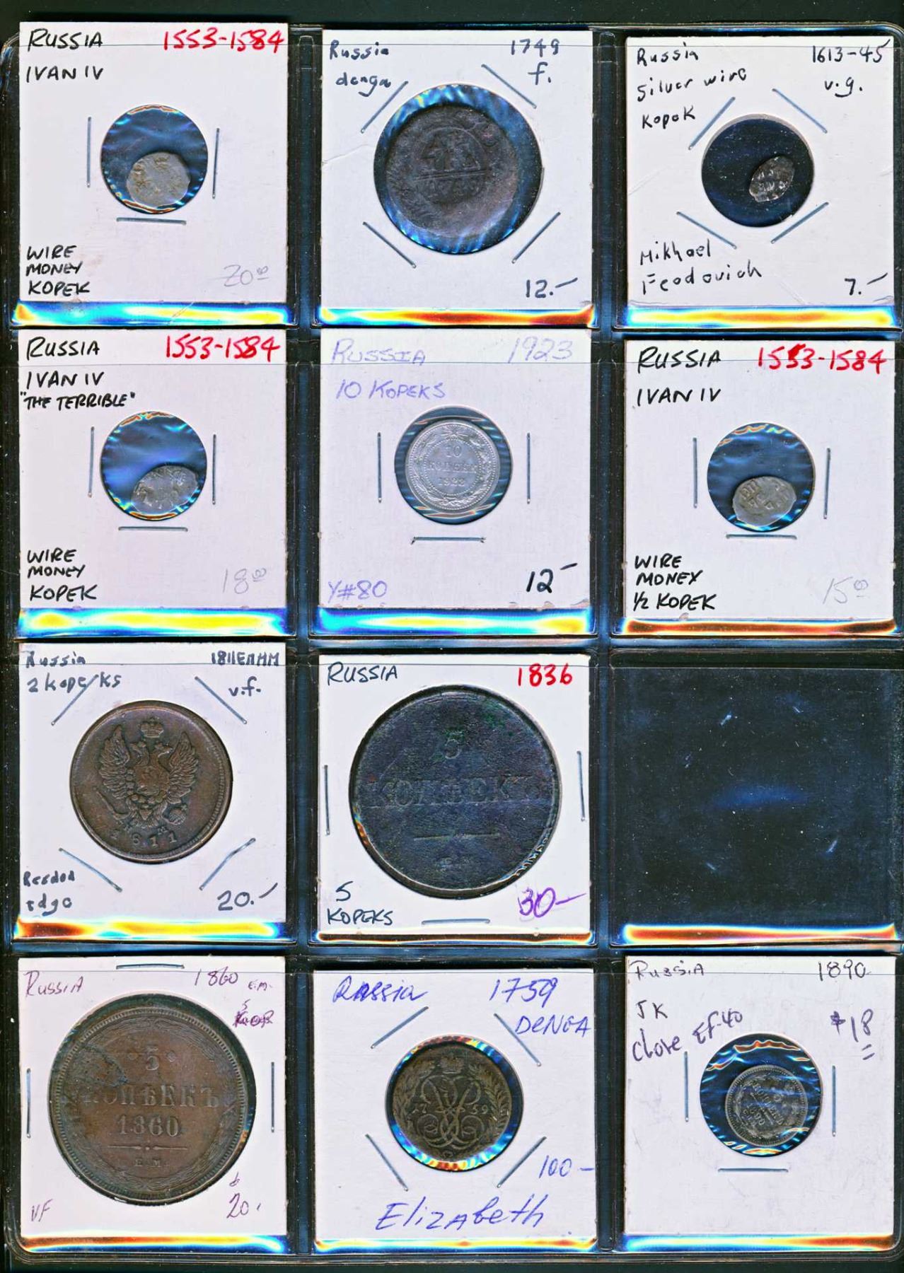 A Wonderful group of Russian (46 Silver and 57 Bronze) coins. Come in a 9-12 pouch page binder.