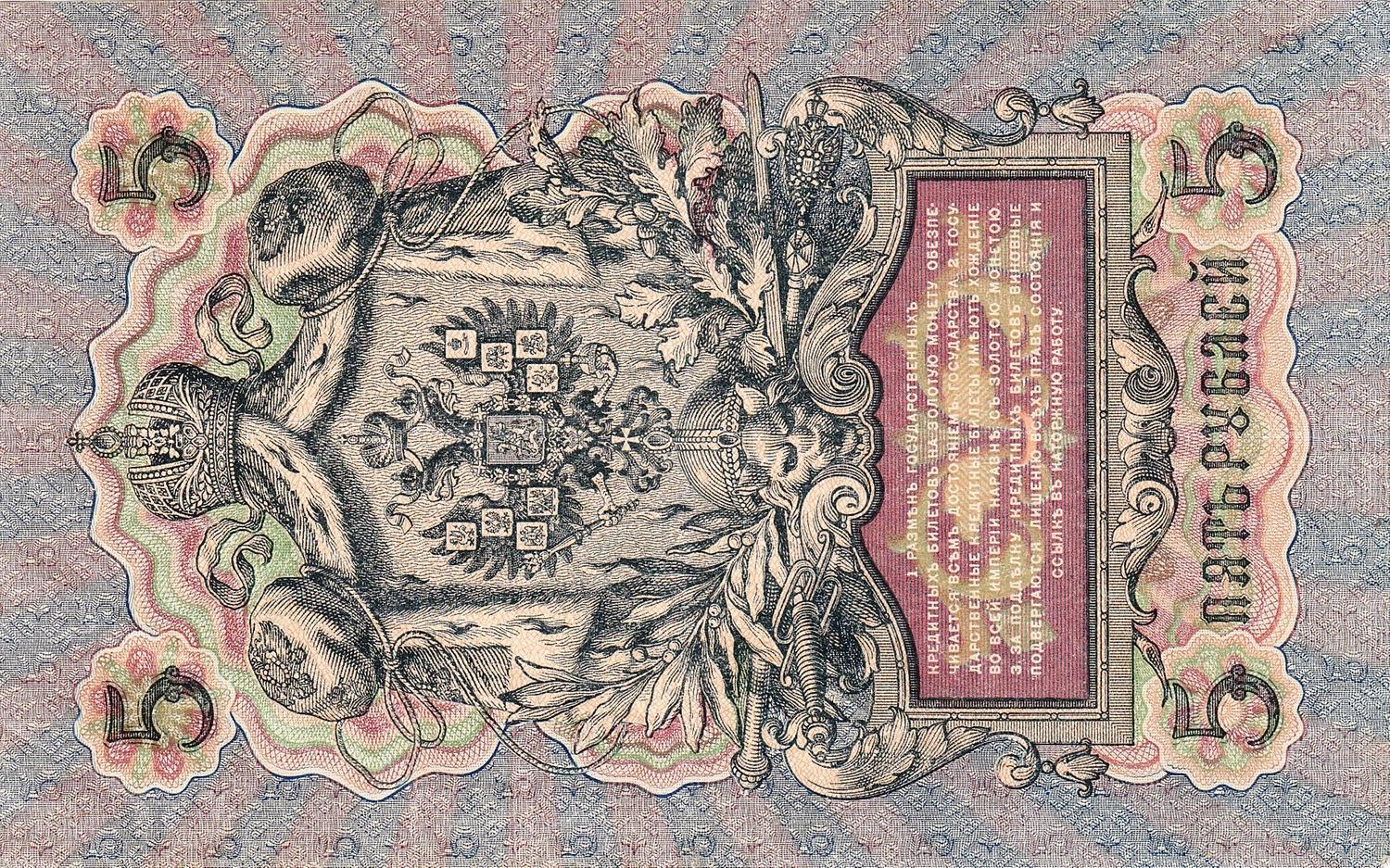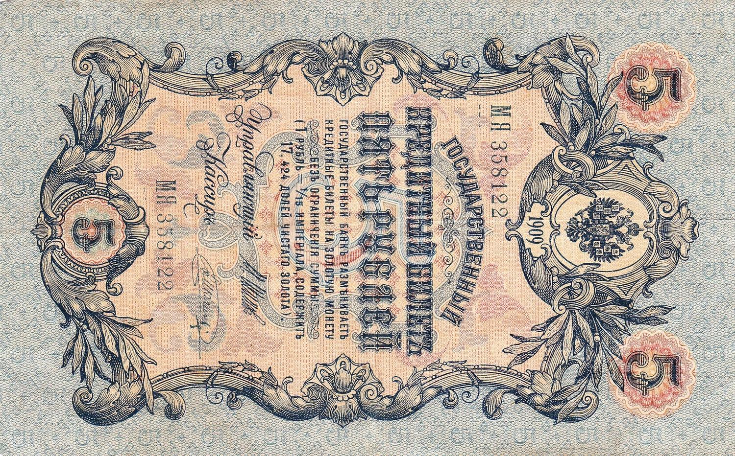 RUSSIA CCCP 1909 5 RUBLES OLD CURRENCY 102 YEARS OLD