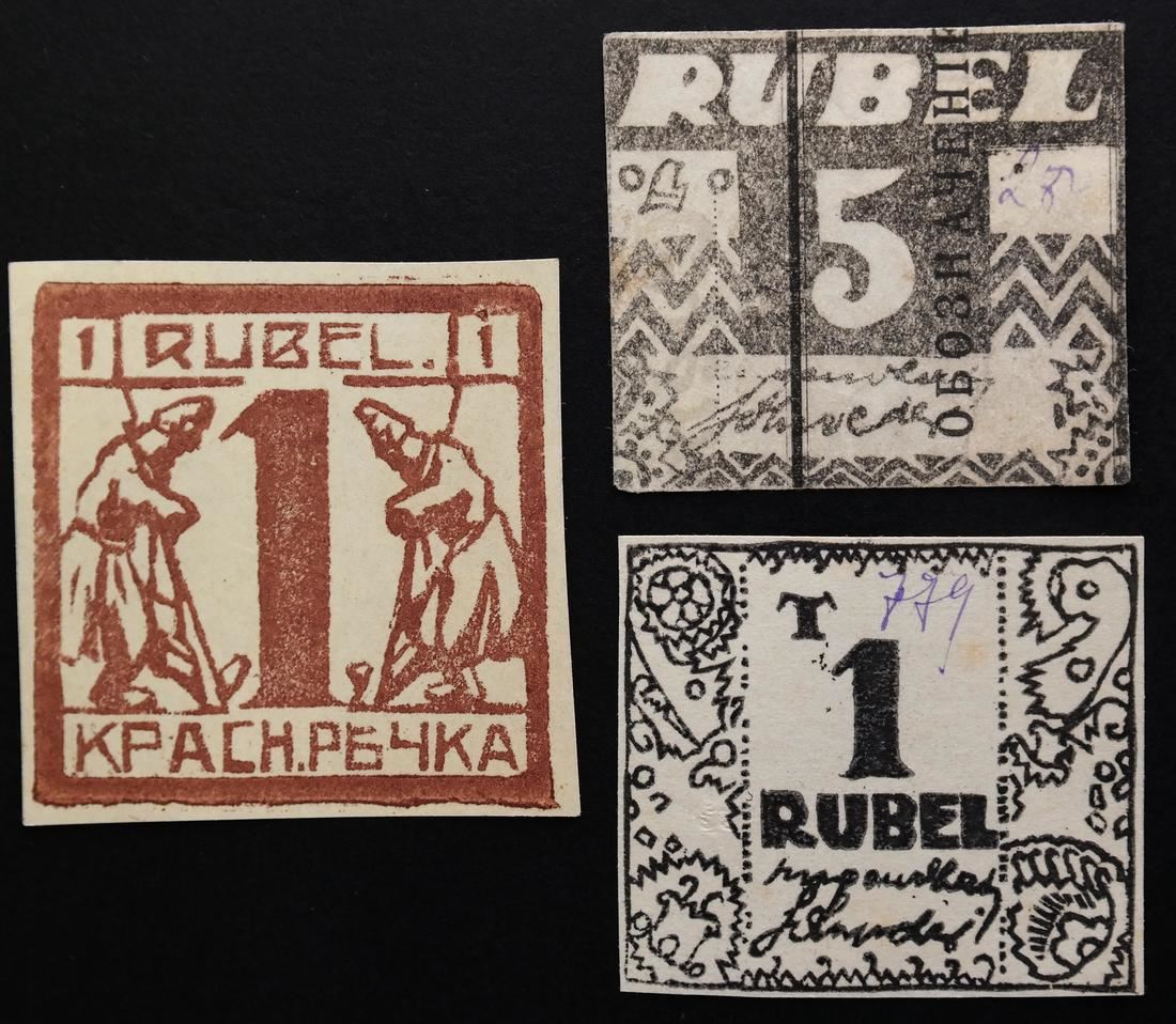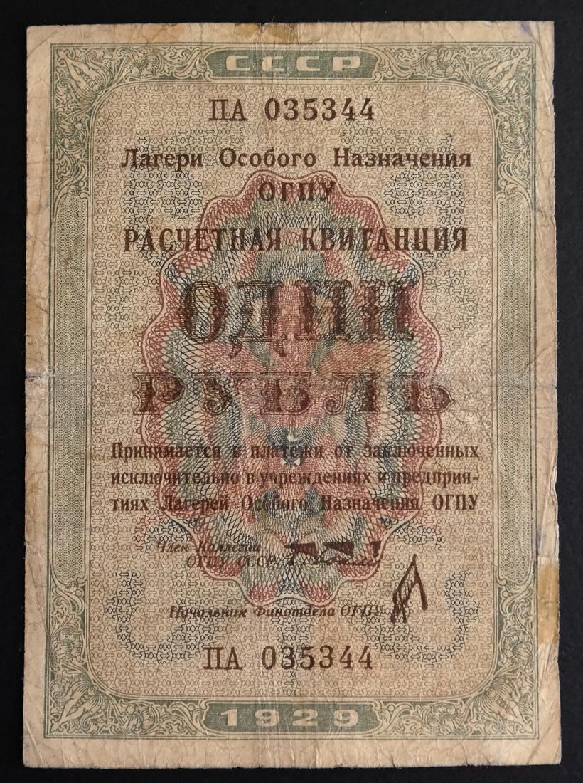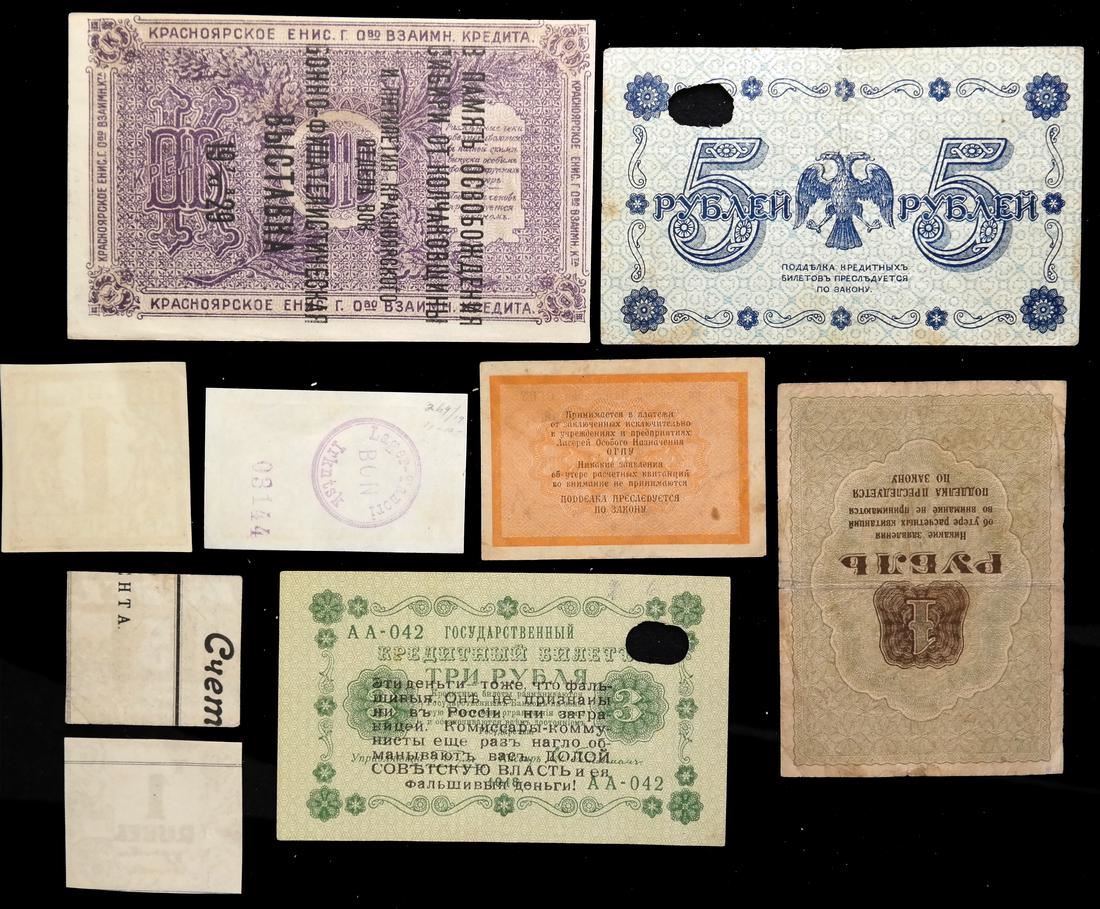 Includes World War I prisoner of war camp scrip and Soviet labor (GULAG) camp notes, mixed condition.
