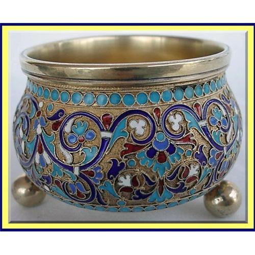 <tr><td>Title:RUSSIAN CLOISONNE ENAMEL BOWL SILVER GILT 19C</td></tr>