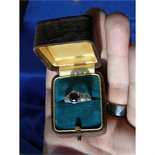 <tr><td>Materials:PLATINUM,DIAMONDS &1CT GARNET</td></tr>