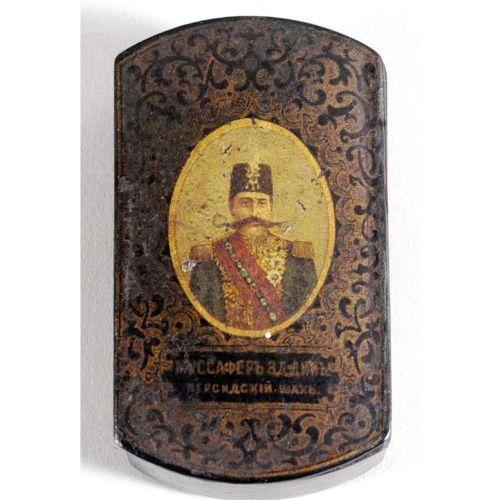1 RUSSIAN LACQUERWARE BOX painted with portrait of officer, 4" long 19th century CONDITION REPORT: crazing and fading. PACKING AND SHIPPING (excluding insurance) by Fairfield Auction to points within the Continental U.S.A. and Canada (all other international must be handled by 3rd party shipper) $20.