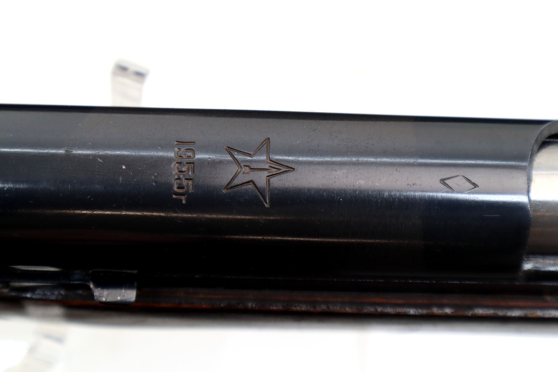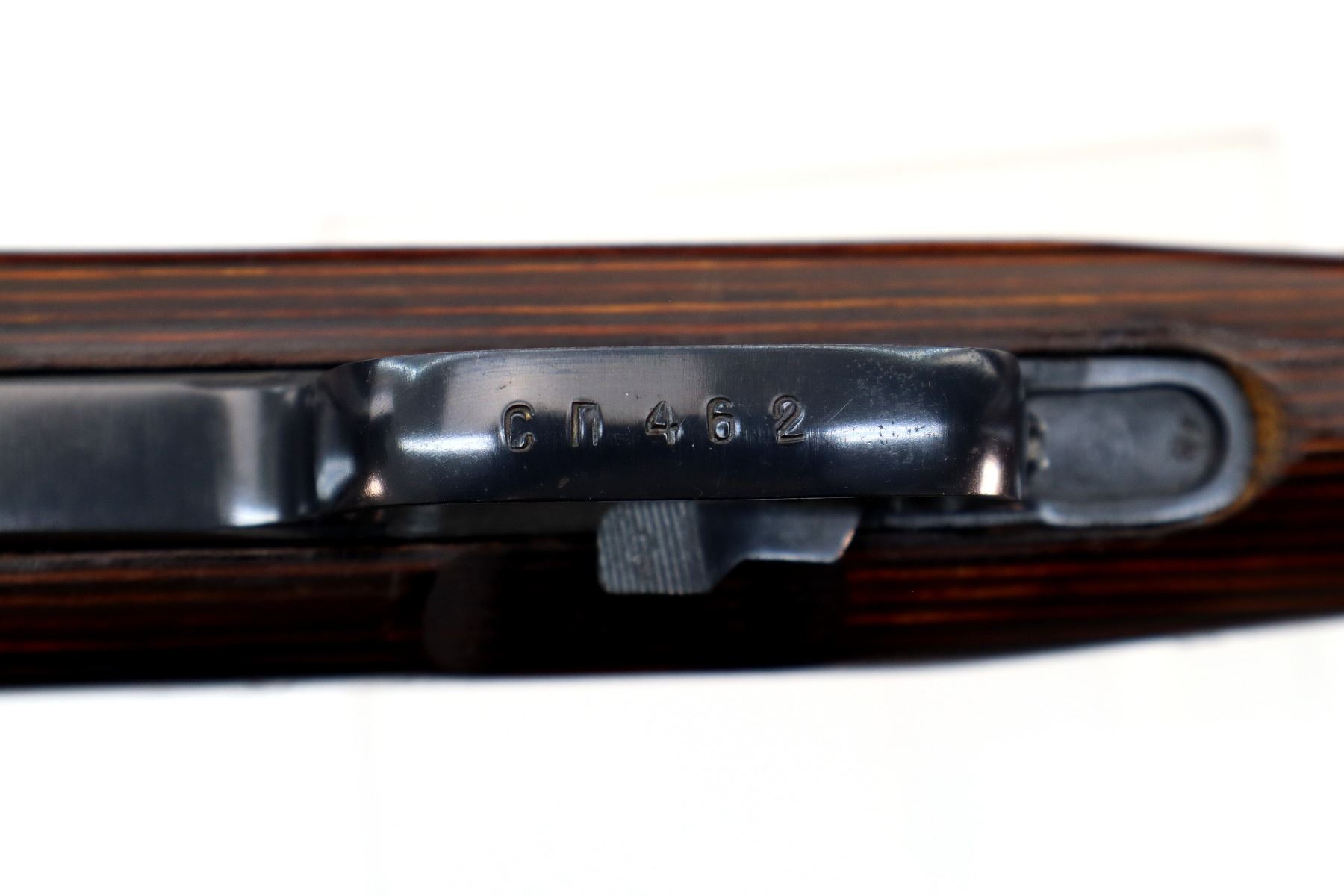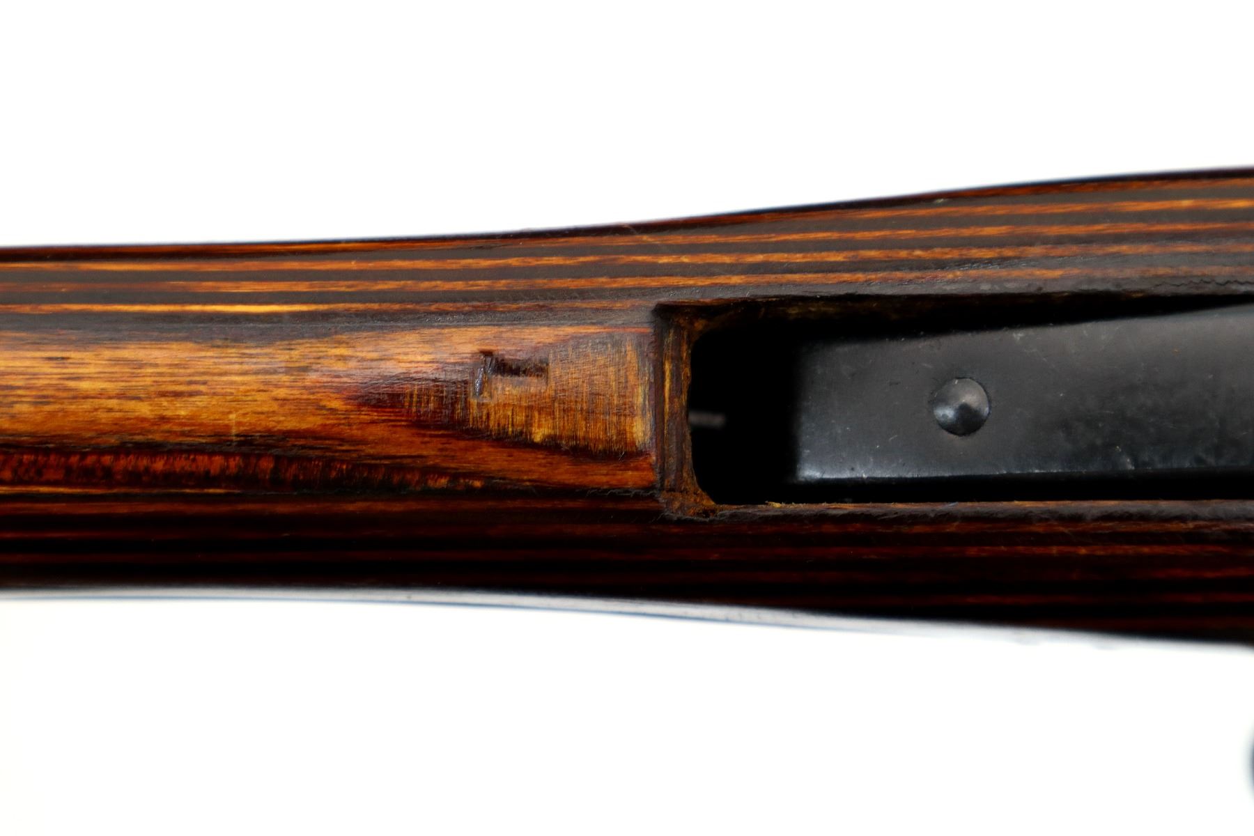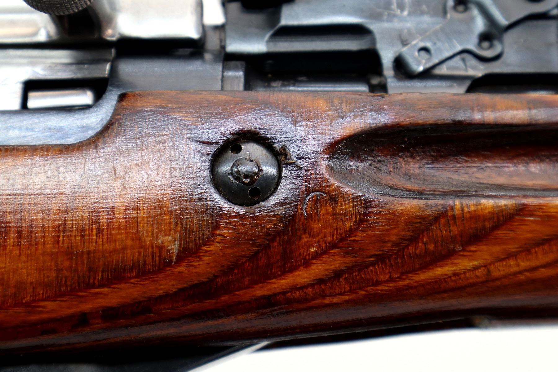 Main Description: Manufactured by Tula 1955, arsenal rebuilt numbered to match except magazine. Post front sight with hood and ramp, adjustable u notched rear sight, blued finish, silver bolt and carrier. Two piece laminated full military wood stocks, finger grooved forearm, pistol grip, smooth steel butt plate with trap and cleaning kit, sling swivels, cleaning rod, attached folding blade bayonet.