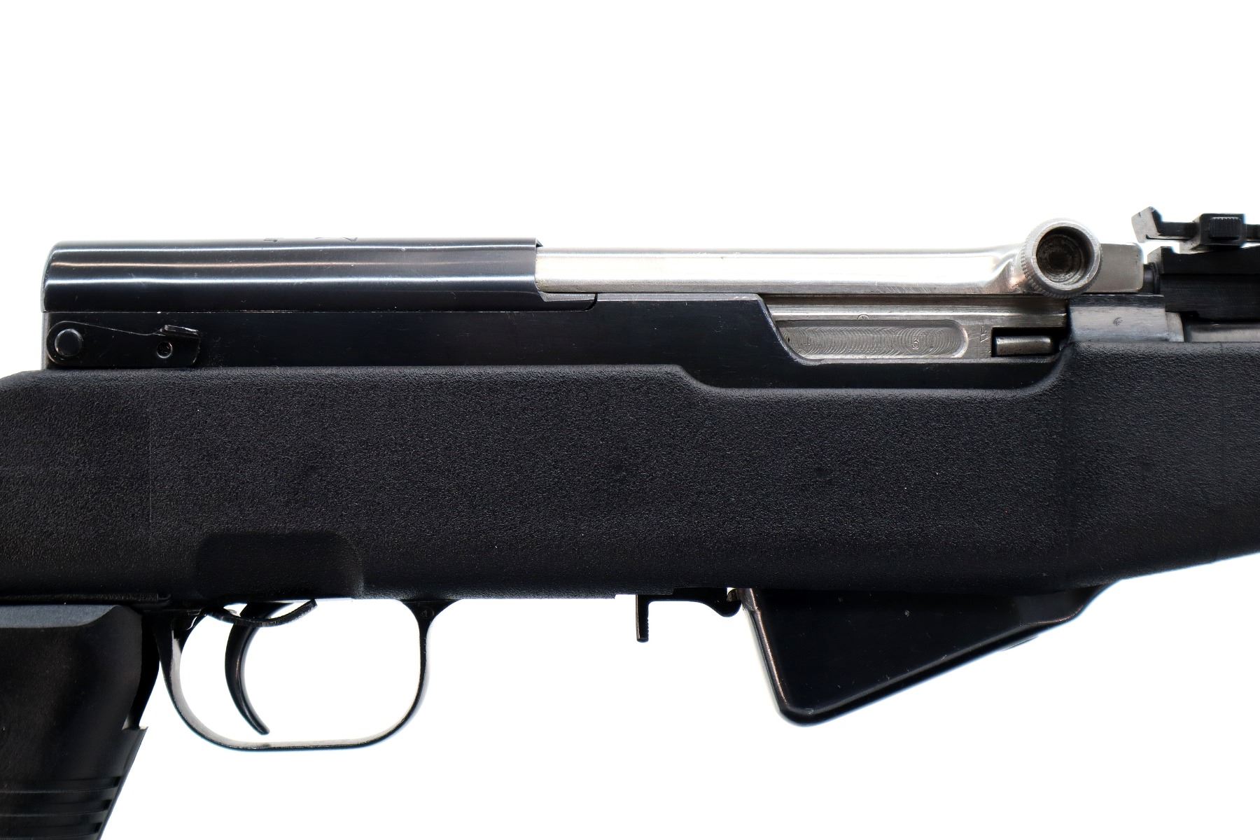 Main Description: Manufactured by Tula 1951, visible numbers match. Post front sight with hood and ramp, adjustable u notched rear sight, blued finish, silver bolt and carrier. Two piece black synthetic Tapco synthetic stocks, ventilated handguard with integral rail on top, grooved forearm and pistol grip with trap, collapsible M4 style butt stock, missing one retaining bolt, checkered butt, sling swivels, cleaning rod, attached folding blade bayonet.
