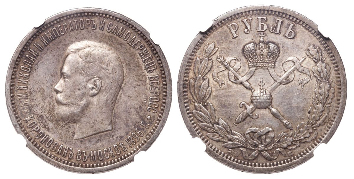 1 Rouble 1896 AГ. Y.60. Coronation of Nicholas II. NGC graded Choice About Unc-58.