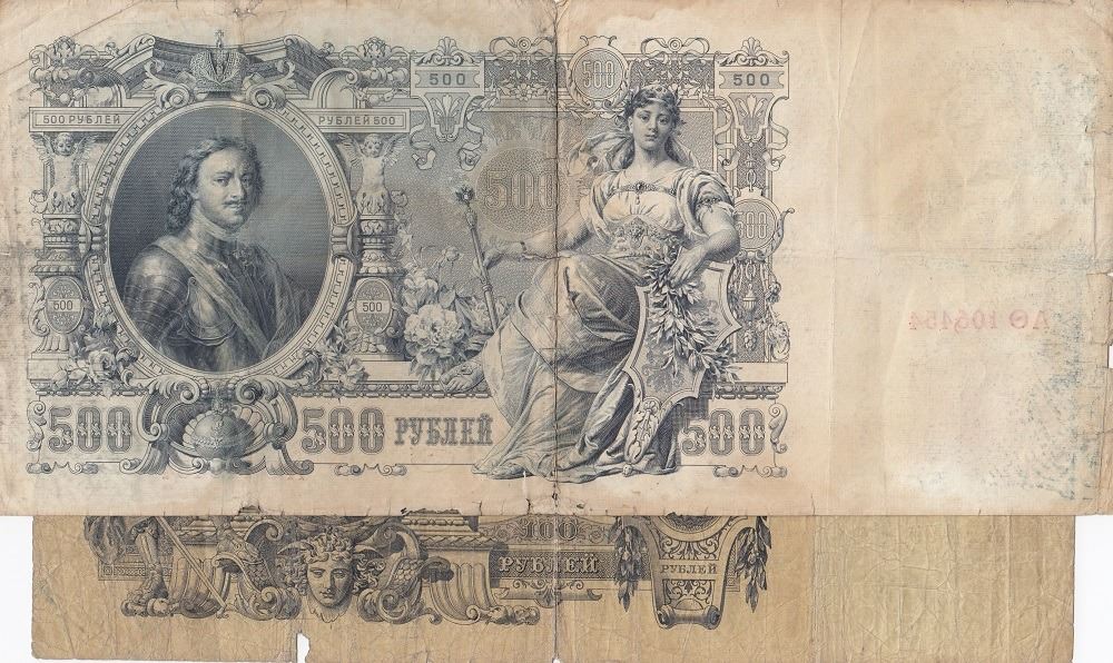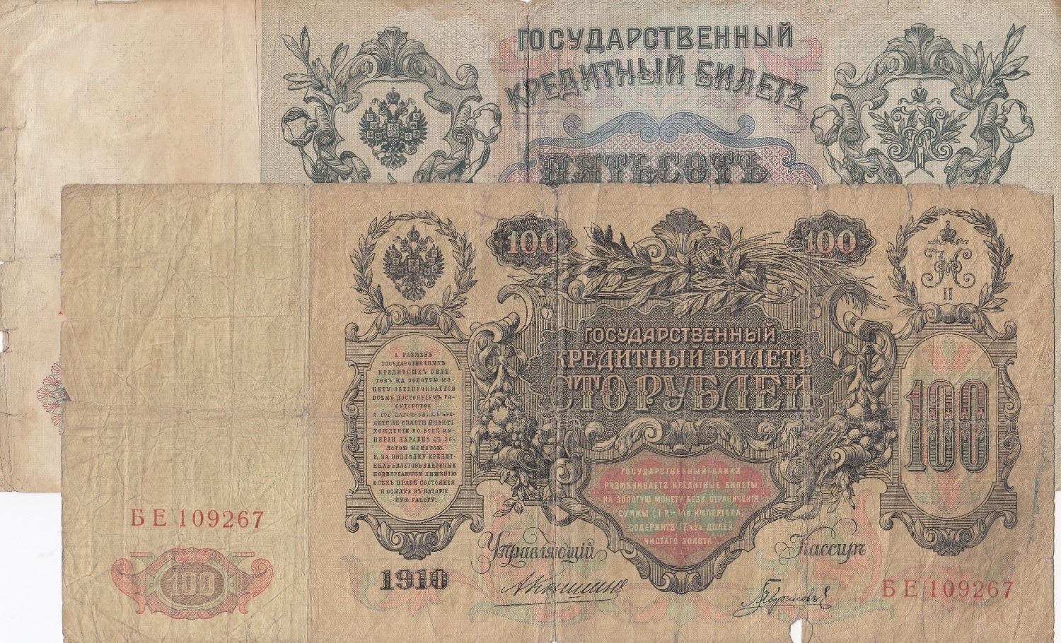 Russia, 100 Rubles and 1000 Rubles, 1910/1912, POOR, p13 / p14, (Total 2 banknotes)