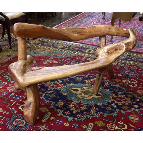 BENCH: Rustic carved arcadia wood driftwood form bench
