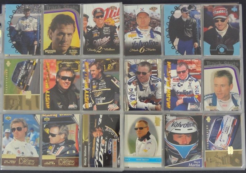 RECEIVE 126 MARK MARTIN & 133 RUSTY WALLACE RACING CARDS, GREAT VARIETY, NICE CONDITION, EST $300-$325