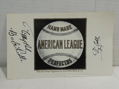 BABE RUTH & TY COBB ON ARTWORK SIGNATURE AUTOGRAPH. NO COA. AS SHOWN. VIEW PICTURE FOR DETAIL.