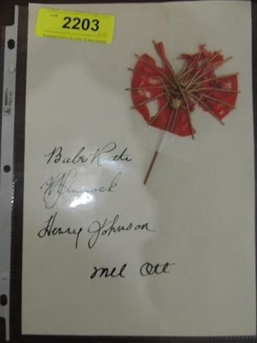 RUTH, OTT, JOHNSON, PENNOCK ON CARD SIGNATURE NO