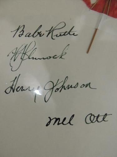 RUTH, OTT, JOHNSON, PENNOCK ON CARD SIGNATURE NO COA. AS SHOWN. VIEW PICTURE FOR DETAIL. PLEASE BE ADVISED, AND INFORMED REGARDING SIGNATURES OR AUTOGRAPHS THAT WE SELL AT AUCTION: WE ARE NOT AUTHENTICATORS, AND WE DO NOT AUTHENTICATE, OR VALIDATE ANY AUTOGRAPHS OR SIGNATURES THAT WE OFFER AT AUCTION. SOME AUTOGRAPHS OR SIGNATURES MAY COME WITH AN AUTHENTICATION FROM ANY ONE OF LITERALLY HUNDREDS OF AUTHENTICATORS ACROSS THE COUNTRY, AND AROUND THE WORLD. WE DO NOT ENDORSE ANY AUTHENTICATOR, NOR DO WE GUARANTEE THAT ANY AUTOGRAPH OR SIGNATURE IS AUTHENTIC, OR THAT IT WILL PASS AUTHENTICATION BY ANY AUTHENTICATOR. ALL AUTOGRAPHS OR SIGNATURES ARE SOLD