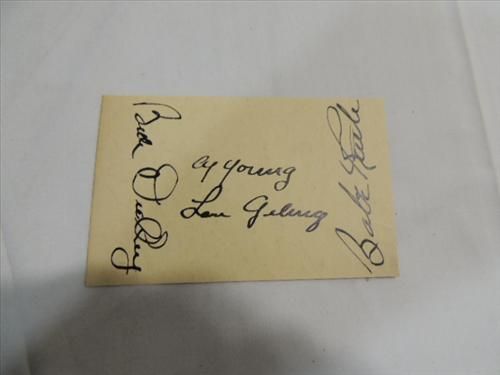 BABE RUTH, CY YOUNG, LOU GEHRIG & BILL DICKEY CUT SIGNATURE AUTOGRAPH. NO COA. AS SHOWN. VIEW PICTURE FOR DETAIL.