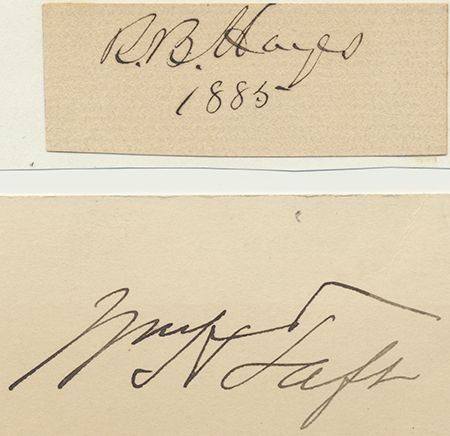 (1822-1892) Nineteenth President of the United States and Union brigadier general. Bold signature on a small slip adding date 1885, mounted; along with a similar signature of President WILLIAM H. TAFT. Two pieces, very good.