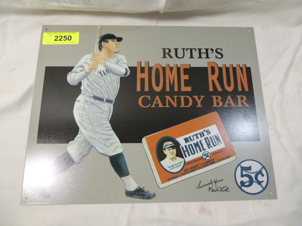 TIN SIGN ADVERTISEMENT SIGN. RUTHS HOME RUN. BASEBALL COLLECTIBLE. AS SHOWN. SEE PHOTO FOR MORE DETAILS.