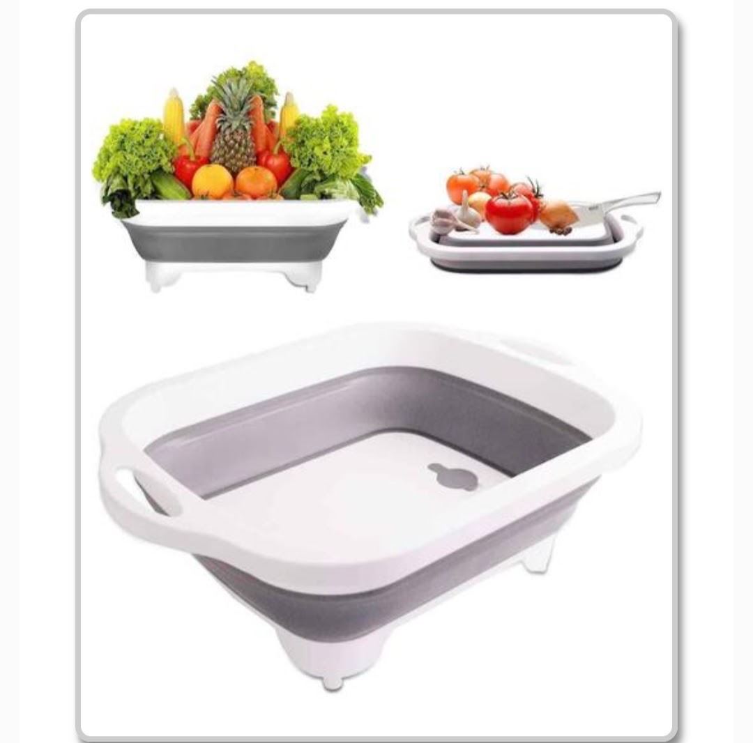 1PCS Collapsible Cutting Board, Foldable Dishes Sink Space Saving, 3In1 Multifunction Storage Basket, For Rv Campers, Grey/White, Brand New