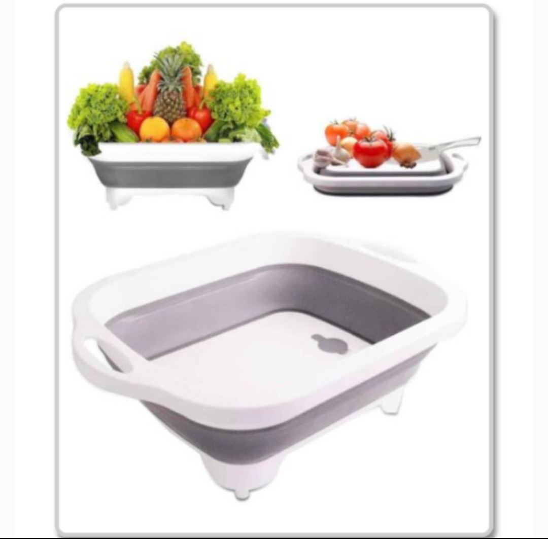 1PCS Collapsible Cutting Board, Foldable Dishes Sink Space Saving, 3In1 Multifunction Storage Basket, For Rv Campers, Grey/White, Brand New