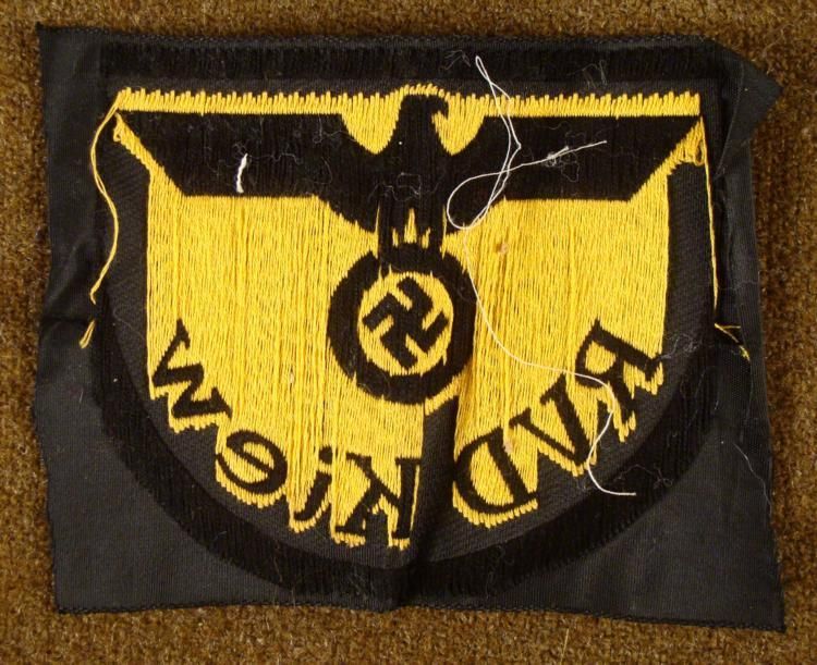 OFFERED HERE IS HARD TO FIND ORIGINAL RVD-KIEW REICHSBAHN/NAZI RAILROAD ORIGINAL SLEEVE PATCH-RARE; IT IS GOLD ON BLACK * * *