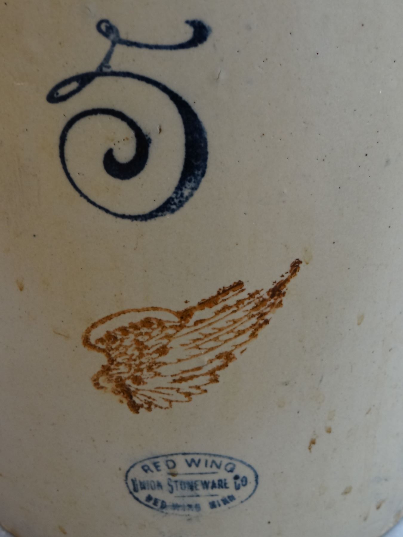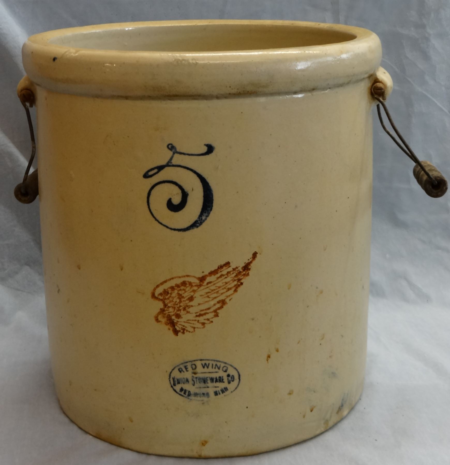 RW 5 gal. crock w/handles, 4" wing, near mint