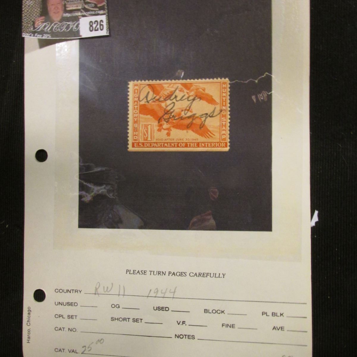 RW11 1944 U.S. Department of Agriculture Migratory Bird Stamp. Used with Signature.