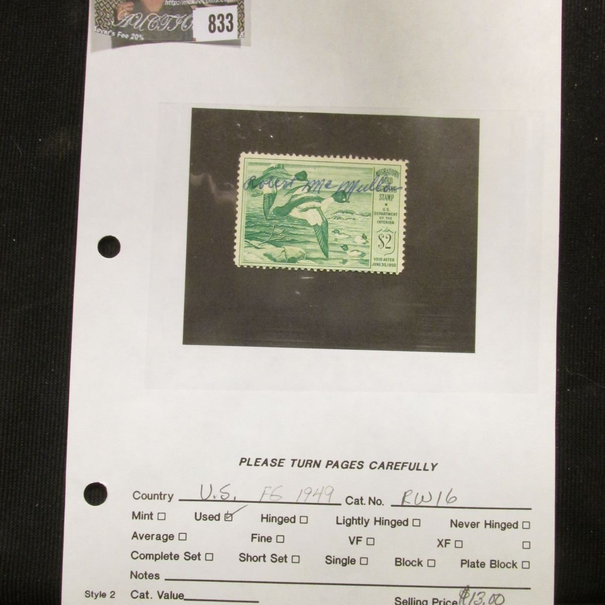 RW16 1949 U.S. Department of Agriculture Migratory Bird Stamp. Signed, Fine.