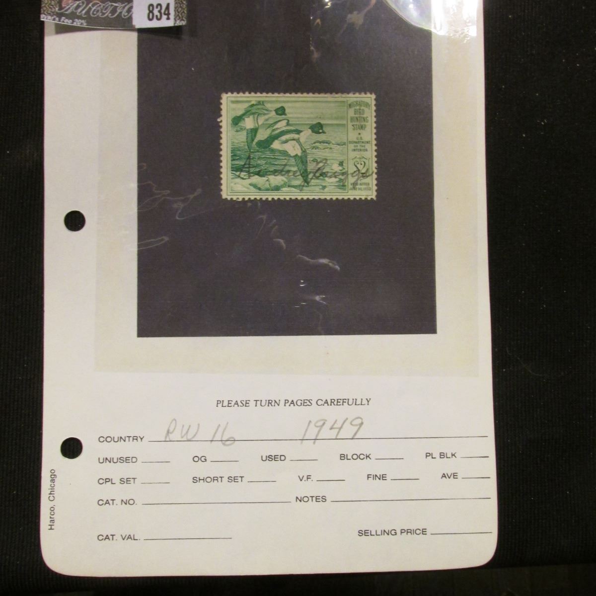 RW16 1949 U.S. Department of Agriculture Migratory Bird Stamp. Signed, Fine.