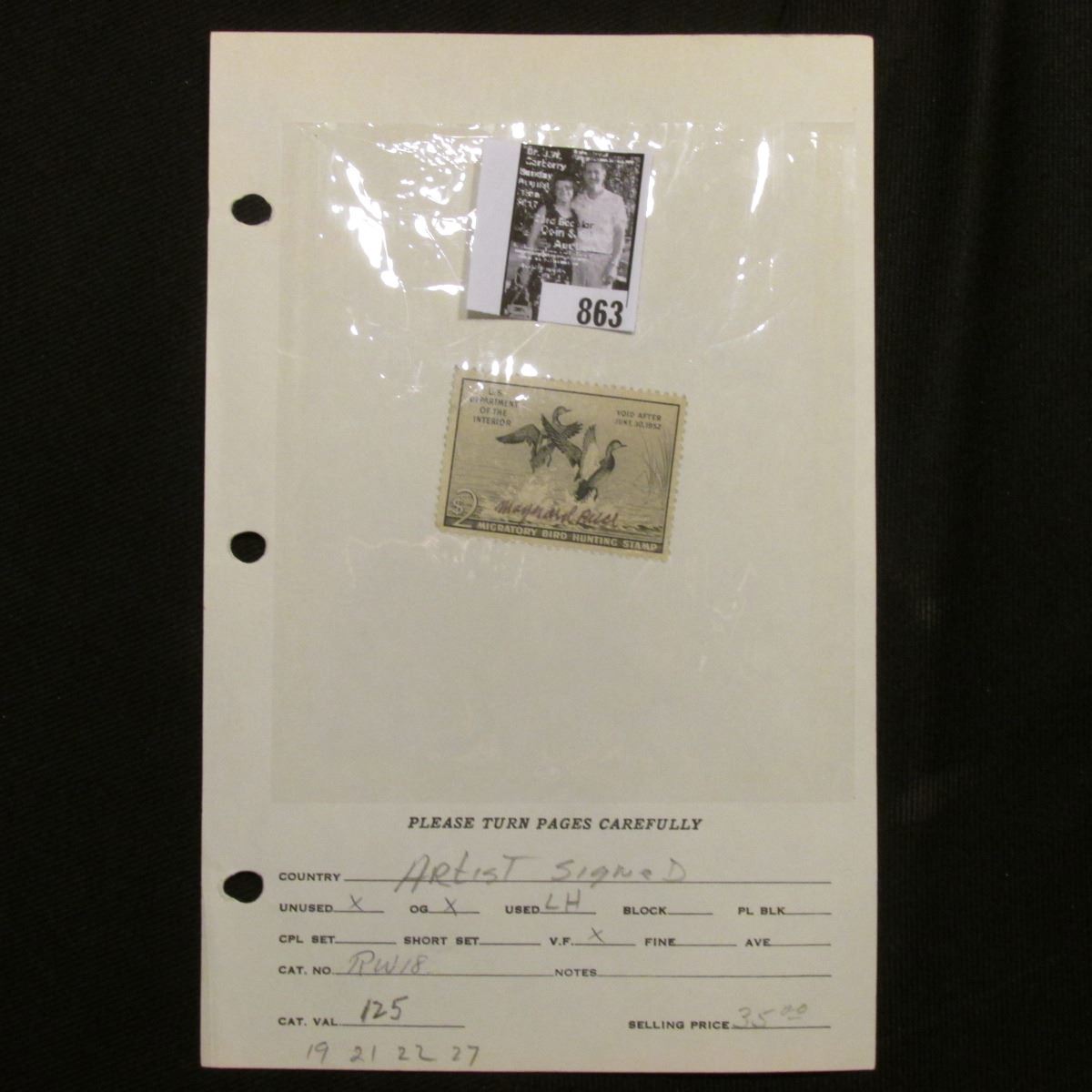 Absentee bidders will receive an invoice detailing their successful bid and shipping charges. Payment must be made within five days of receipt of notification and lots will be mailed after payment in full has been made.