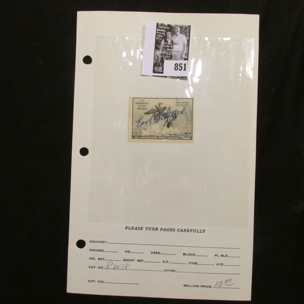 RW18 1951 Federal Migratory Bird Hunting and Conservation Stamp, signed.