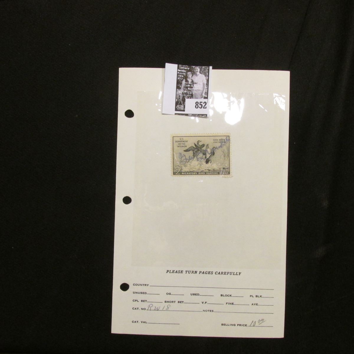 RW18 1951 Federal Migratory Bird Hunting and Conservation Stamp, signed.