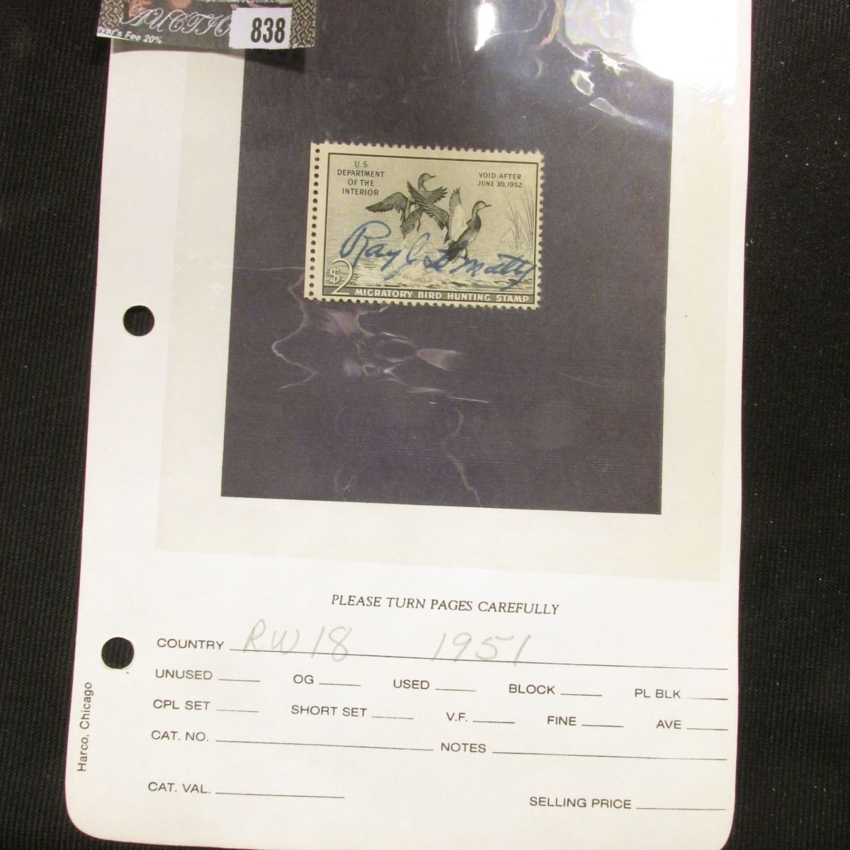 RW18 1951 U.S. Department of Agriculture Migratory Bird Stamp. Signed, Fine.
