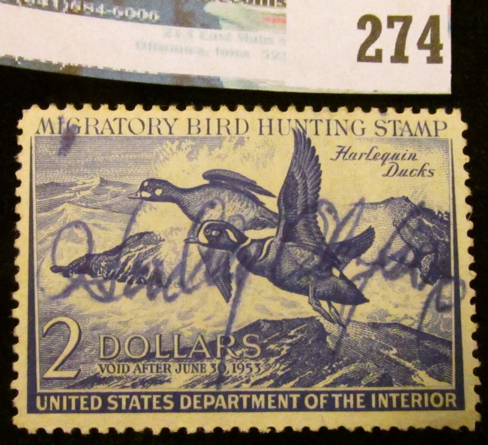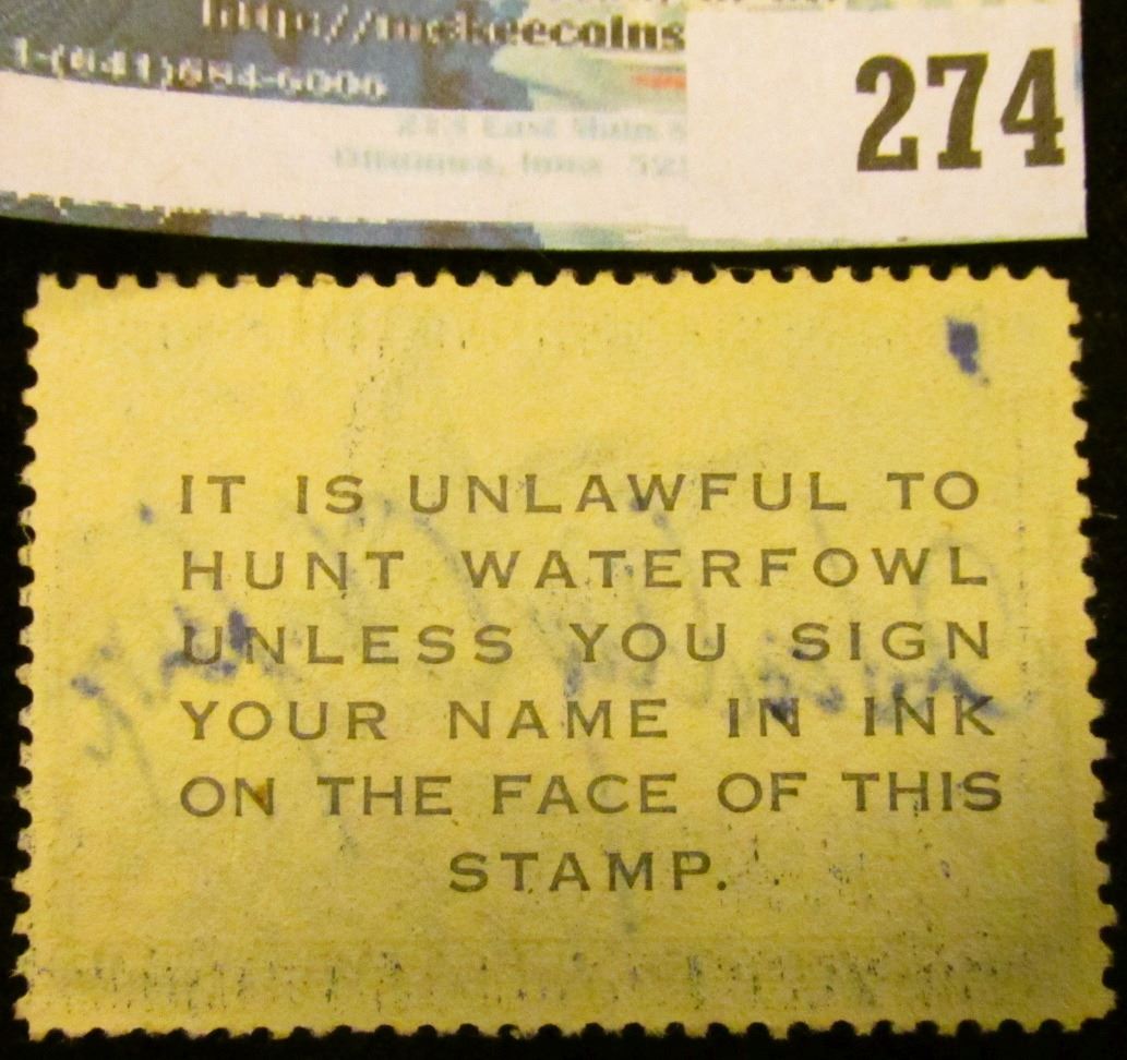 RW19 1952 Federal Migratory Bird Hunting and Conservation Stamp, signed, no gum.