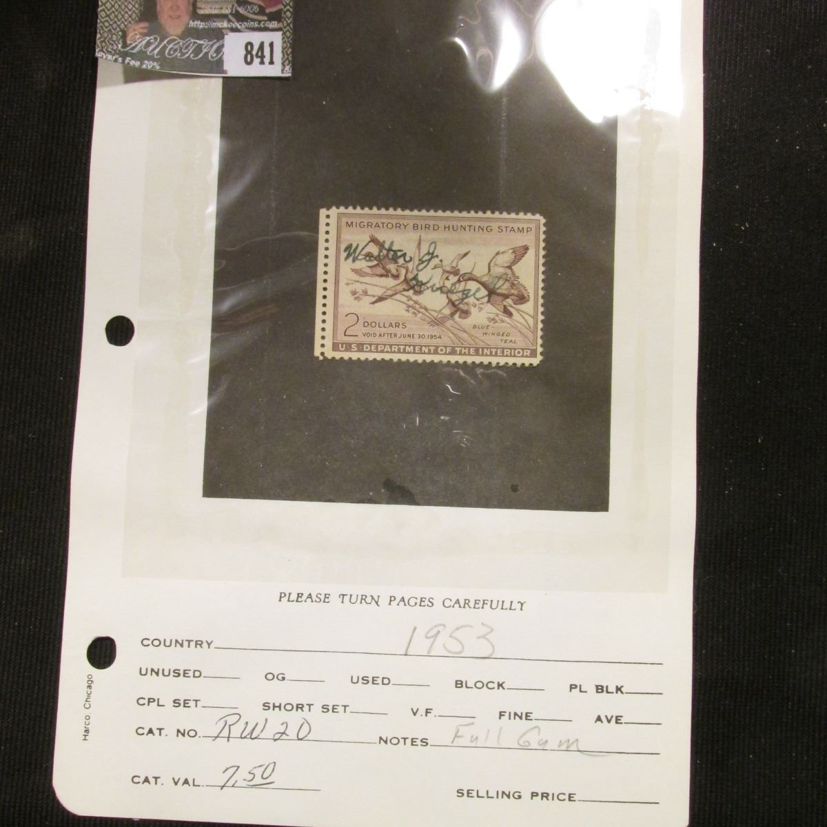 RW20 1953 U.S. Department of Agriculture Migratory Bird Stamp, signed, full gum.