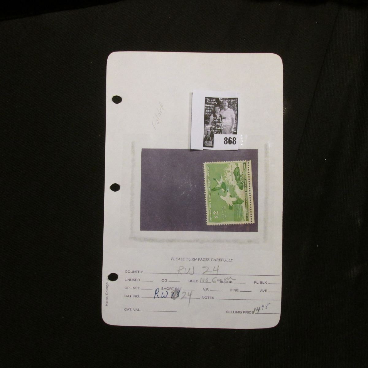 Absentee bidders will receive an invoice detailing their successful bid and shipping charges. Payment must be made within five days of receipt of notification and lots will be mailed after payment in full has been made.