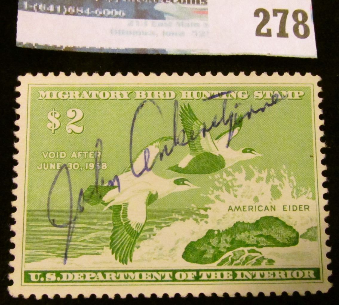 RW24 1957 Federal Migratory Bird Hunting and Conservation Stamp, signed, no gum.