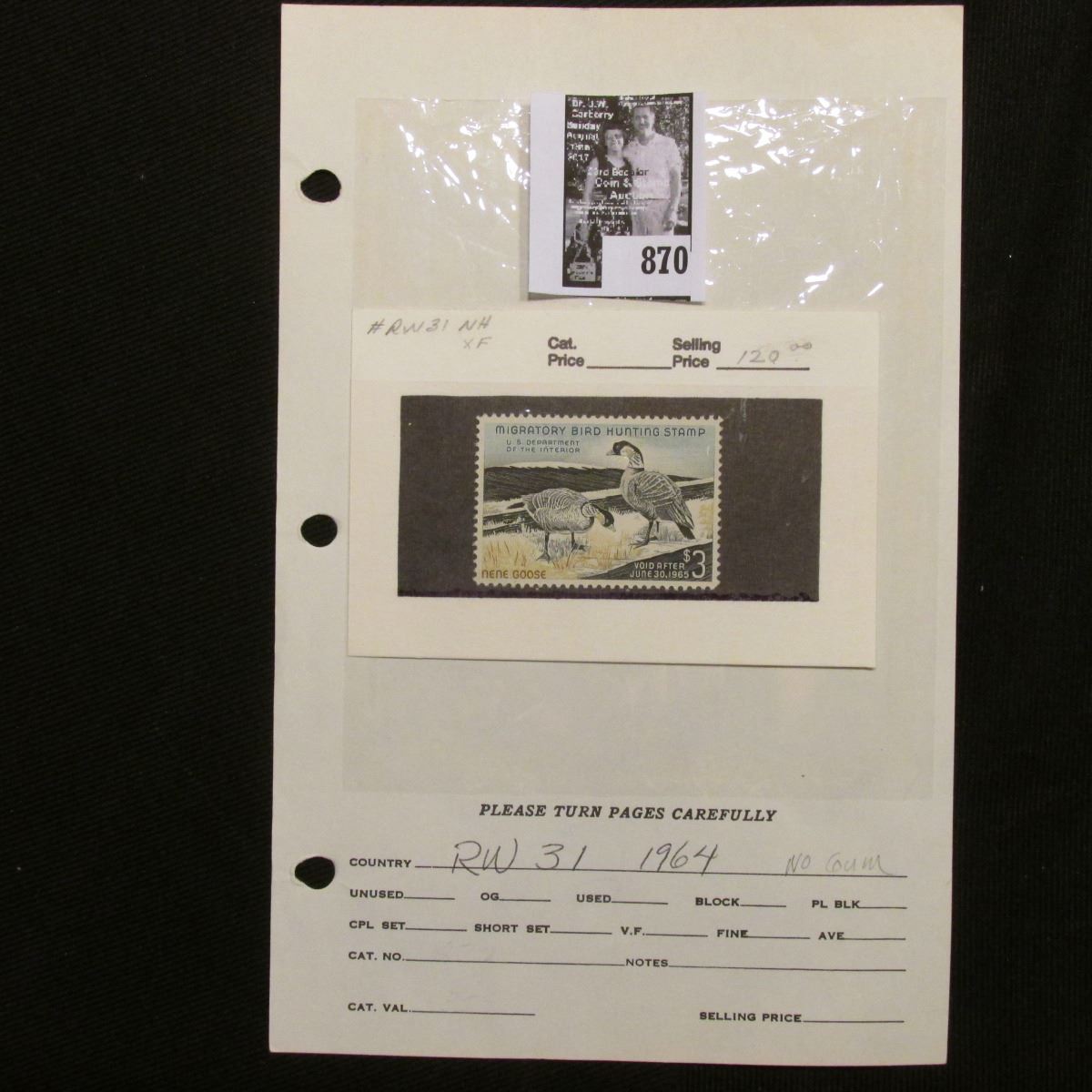 Absentee bidders will receive an invoice detailing their successful bid and shipping charges. Payment must be made within five days of receipt of notification and lots will be mailed after payment in full has been made.