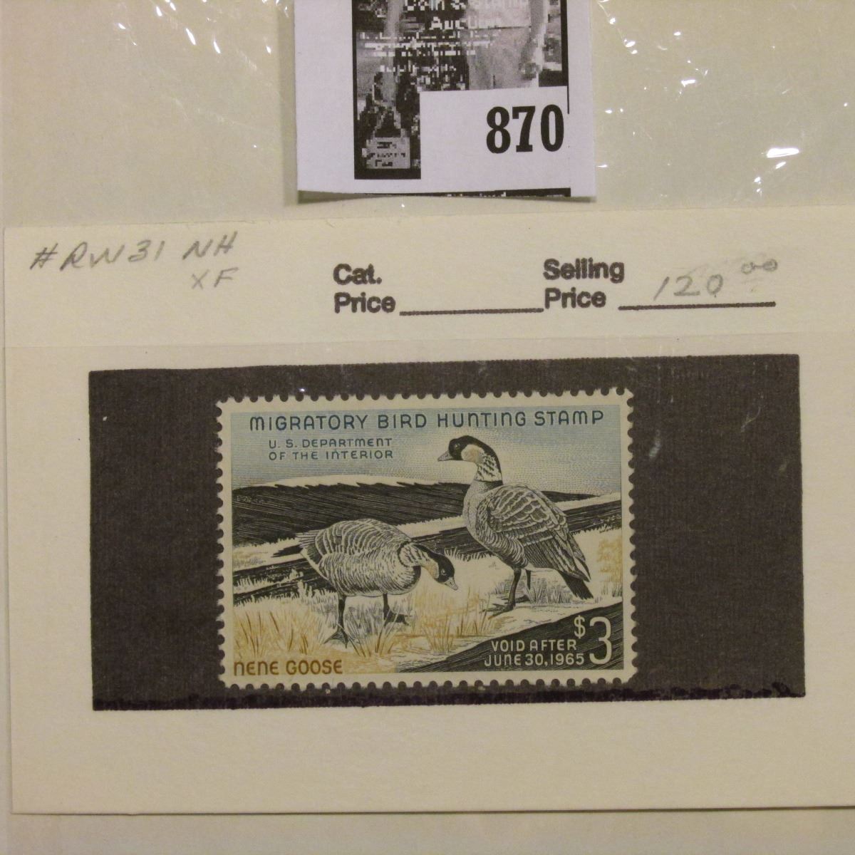 RW31 1964 Federal Migratory Bird Hunting and Conservation Stamp, no gum.